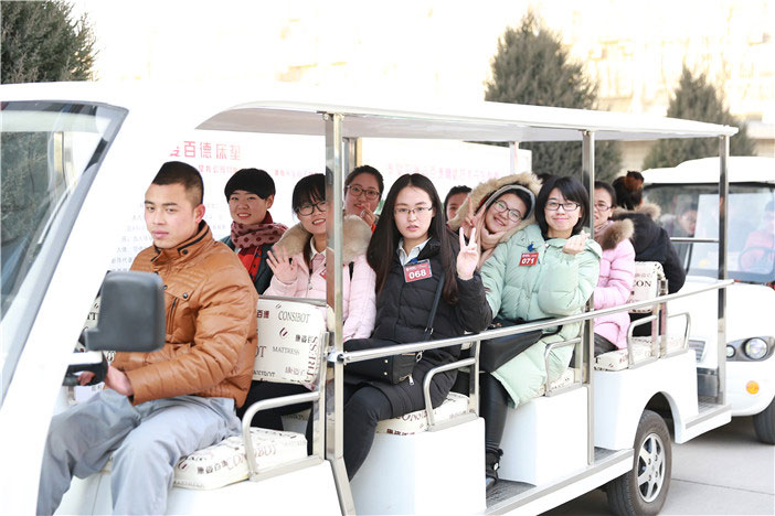 乘觀光車參觀康姿百德自動化生產線