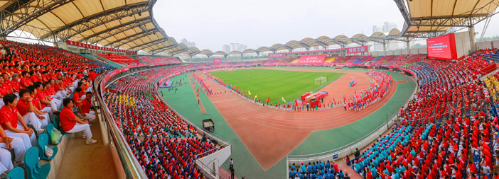 在賽場上,參賽隊員們或身著簡約時尚的運動服,或身著絢麗多彩的民族服飾,在環形的奧體中心舞動成了一道流動風景,渲染出一派盛世歡歌的壯美景象。