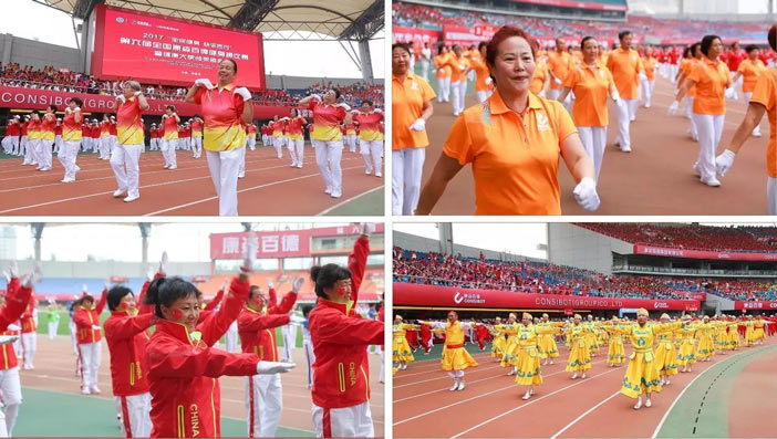無論是白發蒼蒼的耄耋老人,還是聰明伶俐的純真孩童,伴隨著歡快優美的音樂聲,一同有節奏地舞動起來,體現了 “全民健身?快樂同行”的活動主題。