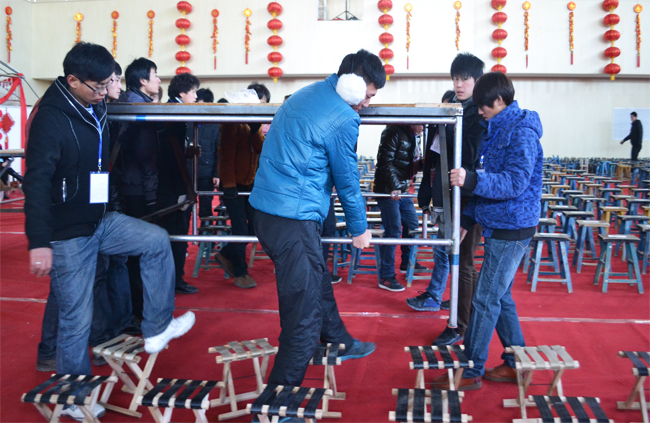 團結(jié)就是力量——搬運的是一個沉重的工作臺,成就的是一場規(guī)模宏大的盛會