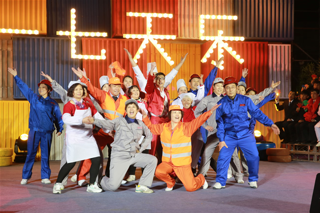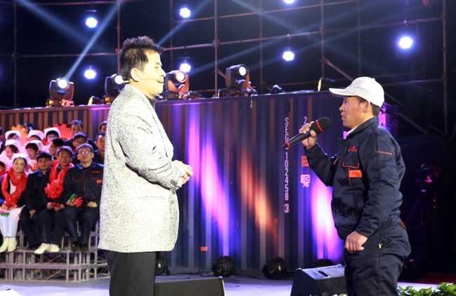 王訊與康姿百德公司員工肩并著肩,共同演唱一首《朋友》