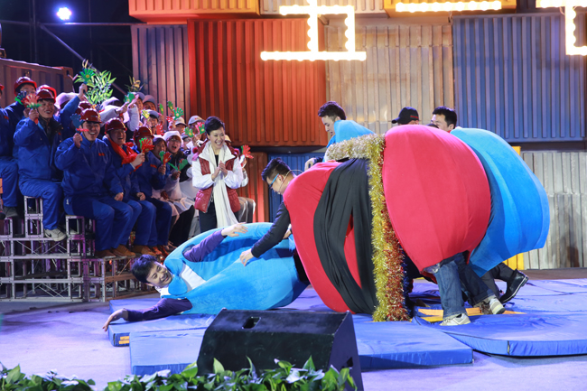 嘉賓穿著特制“菜心服”,游戲玩的不亦樂乎