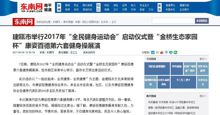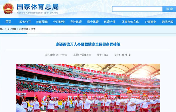 下面,康姿百德小編就帶大家看看政府網站和媒體對第六套康姿百德健身操展演活動的報道吧~