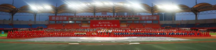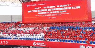 伴隨著優(yōu)美激昂的《走向復(fù)興》音樂(lè),一幅寫有“讓科技造福生命”、面積為608平方米的巨型紅旗步入賽場(chǎng)。康姿百德91名工作人員共舉旗幟,整齊自如地緩緩前行,給人以極大的視覺沖擊!