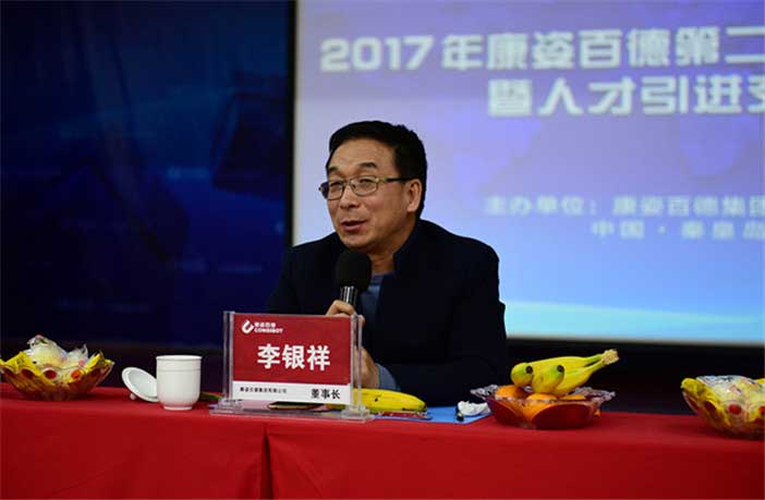 康姿百德集團董事長李銀祥在交流會上發(fā)言