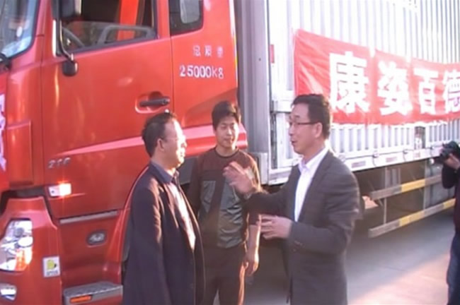25日上午9點,物資車到達石家莊。石家莊康姿百德總代理李志華,代表新華區、裕華區、橋西區、橋東區、長安區、開發區、辛集市、平山縣、藁城縣、正定縣等地的代理商將愛心物資裝上貨車