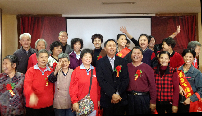 南昌康姿百德健康體驗中心經理喻三保與部分新老客戶合影(前排右四)