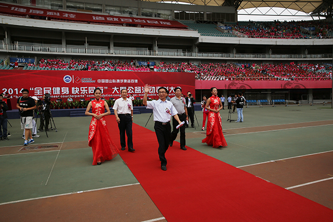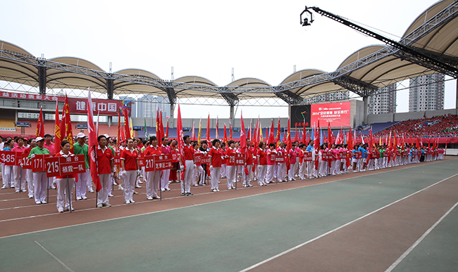 為全面展示康姿百德2014“全民健身快樂同行”大型公益活動的成果,進一步把全民健身活動引向深入,來自全國各地的257個代表隊、11000多人進行了氣勢恢宏的康姿百德健身操展演。伴隨著耳熟能詳?shù)男桑鞔黻犚来稳雸觯幻婷骊犉煊L高揚,一排排隊伍整齊劃一,節(jié)奏明快的旋律和優(yōu)美舒暢的動作有機融合,彰顯出了“我運動、我健康、我快樂”的健身風采和大家對幸福生活的追求,把人們帶入了一個五彩繽紛的歌舞世界。晚上7點30分,經過6個多小時的展演,活動在燈火閃爍的夜色中緩緩落幕。