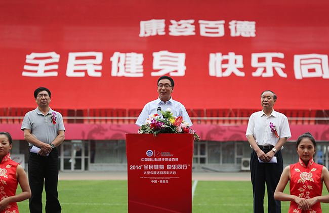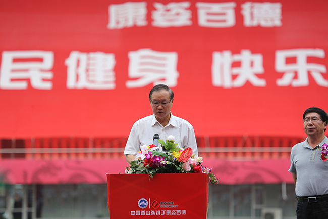 秦皇島康姿百德高新技術開發(fā)有限公司董事長、總經理李銀祥致大會開幕詞;中國登山協(xié)會主席李致新、中國消費者協(xié)會副會長母建華、秦皇島市副市長馮志永等領導出席會議,李致新、母建華作講話,分別對康姿百德公司為“推廣健康科技、造就百歲民族”所做出的努力給予充分肯定;中國奧委會副主席段世杰宣布康姿百德第三套健身操展演開始。