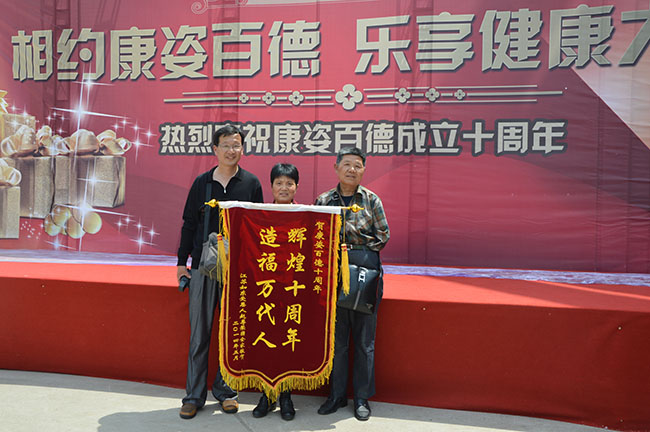 5月13日,來自江蘇南通、邳州、靖江,河南新密、長垣,河北石家莊等地的新老朋友,前來康姿百德科技園參觀。這是康姿百德公司“暢游北戴河 歡樂健康行”活動中迎來的第六批參觀團,至此,共有5800多名來自全國各地的朋友參加了此次活動。 參觀過程中,一位來自河南的朋友告訴筆者,他是在參加完公司組織的北戴河旅游后來公司參觀的,在北戴河旅游中,他先后去了山海關、鴿子窩、聯峰山、集發觀光園等景點,通過登山看海賞美景,不僅鍛煉了身體,還洗滌了心靈。今天又聽了專家的講座,了解了更多關于健康的知識。這次活動讓他不僅收獲了健康,也收獲了快樂。 參觀結束,江蘇如東的客戶趙尊榮、管維萍夫婦,為了表達他們對公司十周年華誕的祝福,還為公司送上了專門制作的錦旗,并??底税俚鹿景l展的越來越好。