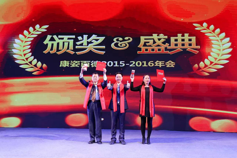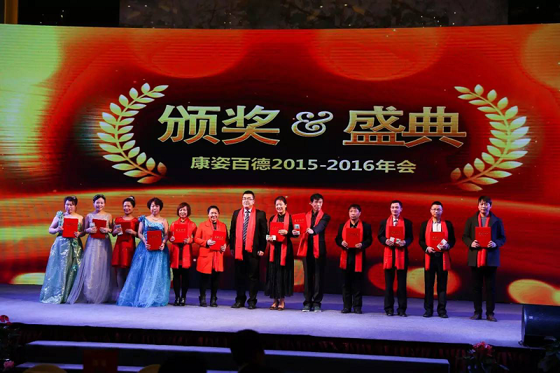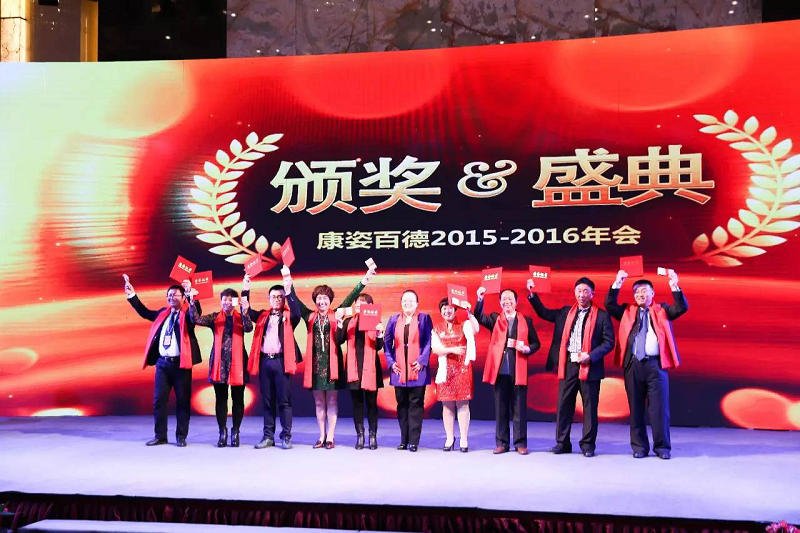 最先呈現的是情景劇《信仰》,在《信仰》中,一部磅礴大氣的奮斗史詩被徐徐展開,康姿百德由小到大、由弱到強的12年奮斗之旅一覽無余,所有觀看情景劇的康姿百德人,無不沉浸在康姿百德艱難而又輝煌的發展之旅中。回憶過往,所有的康姿百德人都深深的被董事長李銀祥先生及其他高管的愛國、奮斗精神所折服,在情景劇的最后,隨著董事長李銀祥先生的一句“同仁們,讓我們抱著必勝的信仰,向著勝利的方向,前進!”,整個會場的氣氛被完全點燃,所有康姿百德人起立鼓掌,表示2016年要繼續團結在董事長李銀祥先生的領導下,與公司一起創造更加美好的未來。