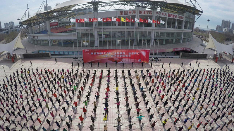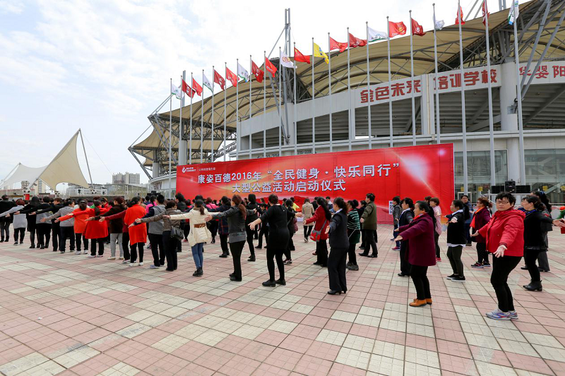 學員們參與康姿百德2016年“全民健身·快樂同行”大型公益活動的啟動儀式