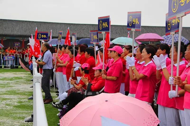 盡管當時天空飄著小雨,但是絲毫抵擋不住人們參賽的熱情,身著統一隊服的健身愛好者們構成了一道亮麗的風景線。