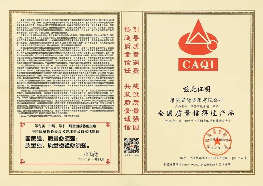 康姿百德再次被授予“全國質量誠信標桿企業”的殊榮,更加堅定了康姿百德“質量先行”的發展步伐,同時也更加推動了康姿百德積極落實質量主體責任,樹立行業質量標桿,引導市場質量消費,進一步鞏固了康姿百德標桿企業的行業地位。