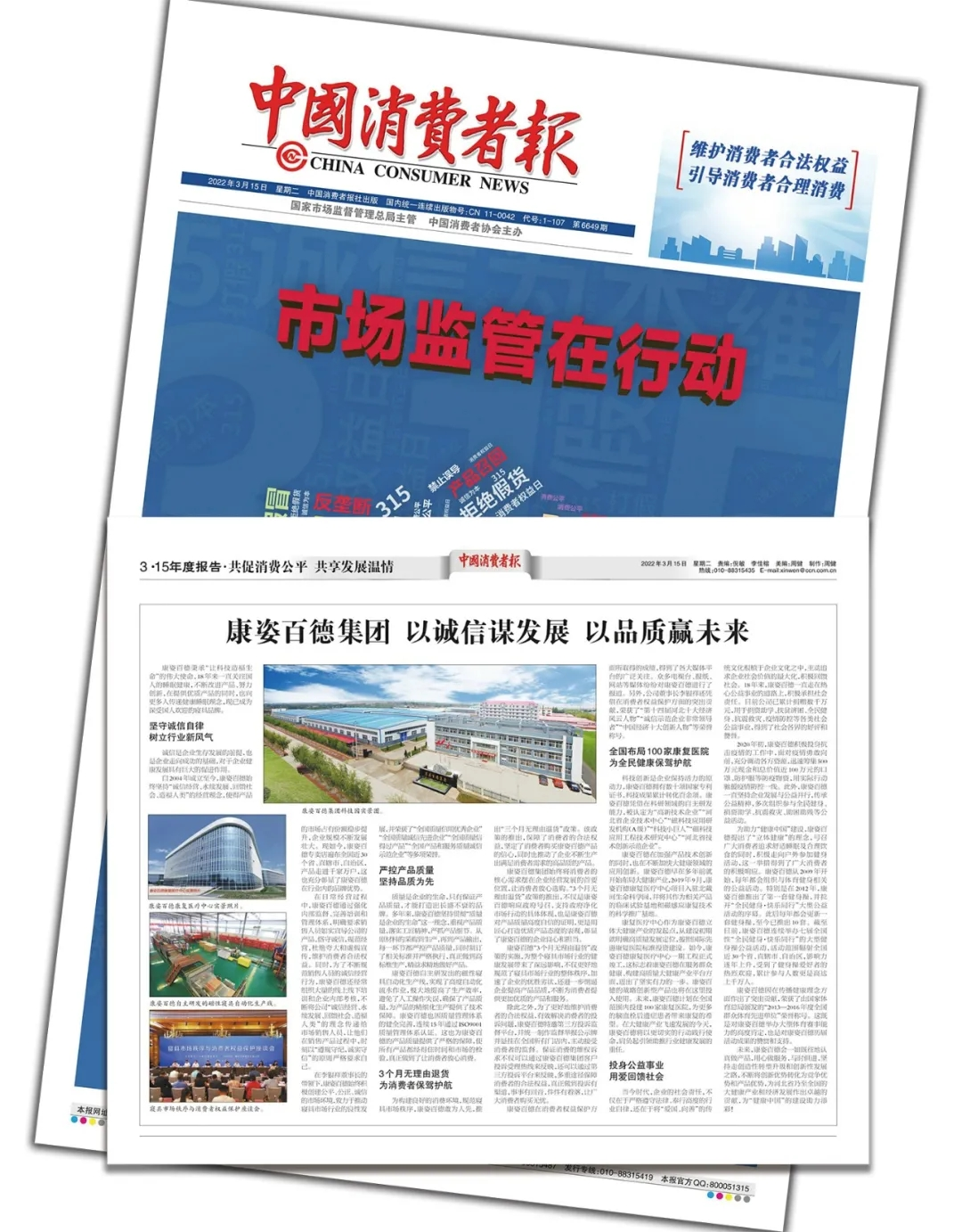 “3·15”國(guó)際消費(fèi)者權(quán)益日,康姿百德再一次以“康姿百德集團(tuán) 以誠(chéng)信謀發(fā)展 以品質(zhì)贏未來”為主題,榮登《中國(guó)消費(fèi)者報(bào)》。這充分說明,康姿百德在誠(chéng)信自律、維護(hù)消費(fèi)者合法權(quán)益等方面的努力和付出,得到了社會(huì)各界的高度肯定和認(rèn)可。