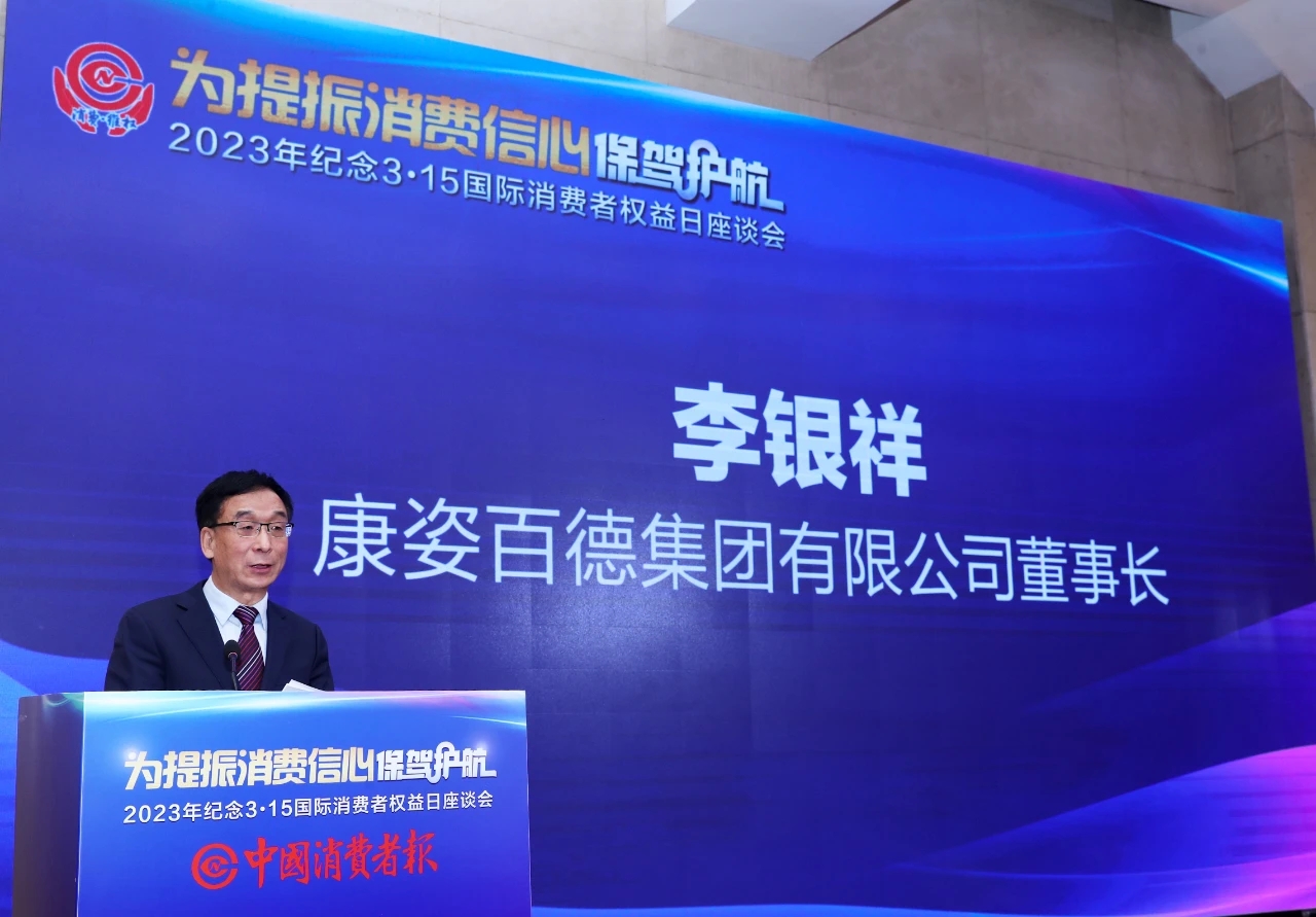2023年3月14日,經國家市場監督管理總局、中國消費者協會指導,中國消費者報社、中國消費網主辦的2023年度“紀念3·15”國際消費者權益日座談會在京召開。來自國家市場監管總局相關司局負責人、中國消費者協會領導,以及在保護消費者權益方面貢獻突出的典范企業等,共同參加本次座談會。康姿百德集團董事長李銀祥受邀出席,并作主旨演講。