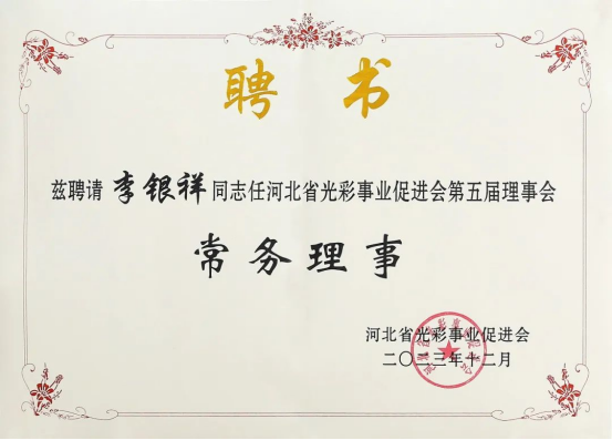 康姿百德集團董事長李銀祥當選為“河北省光彩事業促進會第五屆理事會常務理事”