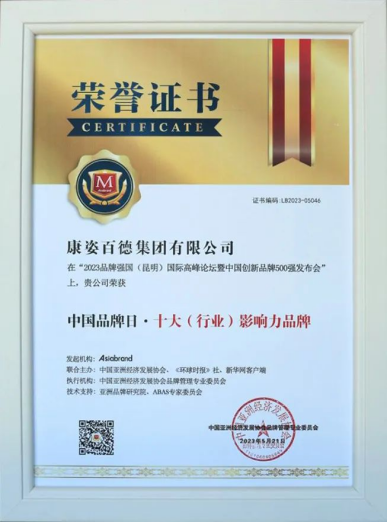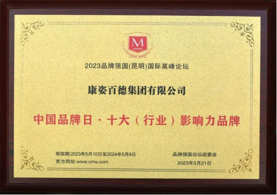 康姿百德集團榮獲“十大(行業)影響力品牌”稱號