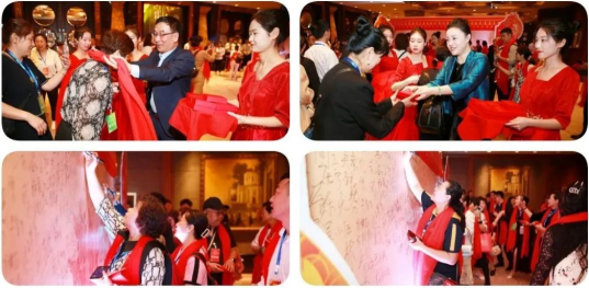 年會從星光熠熠的紅毯簽名開始,家人們滿懷喜悅的心情,走在入場的紅毯上。這里有公司精心準備的伴手禮、承載著火熱祝福的紅圍巾。陸續入場的家人們,紛紛在簽名墻前簽名并合影,記錄著歡聚的美好時刻!