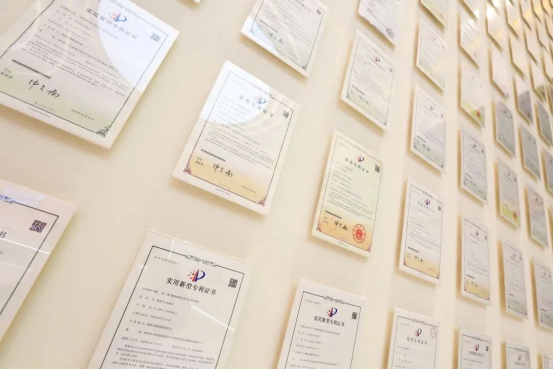 整面的專利墻,收錄了李銀祥董事長領導的旗下集團百余項專利。這面墻沒有過多的裝飾,卻足以彰顯李銀祥董事長對科研創新的重視和投入。康姿百德在李銀祥董事長的領導下,自成立以來就高度重視在科研方面的投入,不斷加大科研投入力度,致力于提升產品和服務質量。