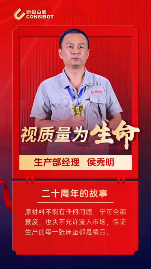 今年是康姿百德集團成立20周年。在20年的發展歷程中,涌現出一大批在生產發展、原料采購、質量管控、經營管理、售后服務等各個領域立足崗位、奉獻建功的優秀代表。讓我們一起看看這些榜樣故事。本期帶你走進康姿百德生產部經理侯秀明。