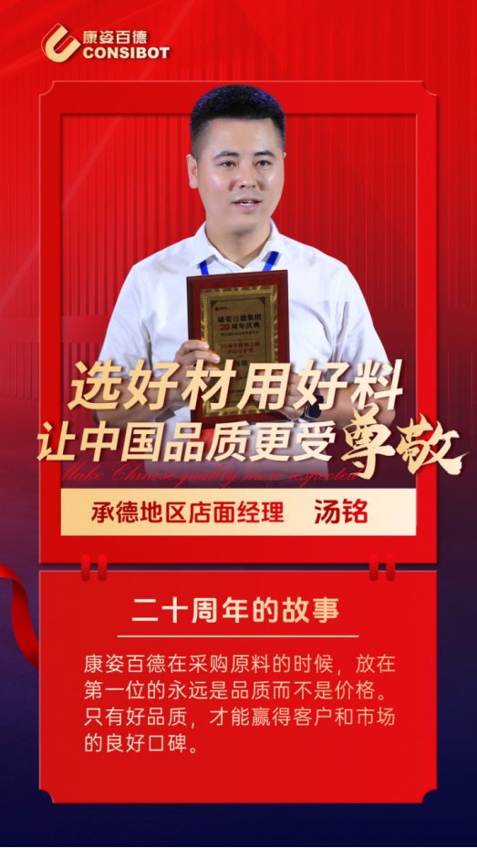 今年是康姿百德集團成立20周年。在20年的發展歷程中,涌現出一大批在生產發展、原料采購、質量管控、經營管理、售后服務等各個領域立足崗位、奉獻建功的優秀代表。讓我們一起看看這些榜樣故事。本期帶你走進康姿百德承德地區店面經理湯銘。