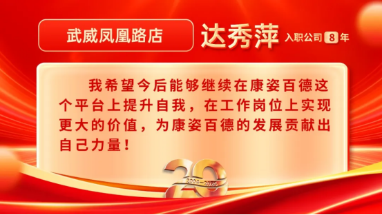 康姿百德20周年專賣店員工的系列故事會持續推出,讓我們一起期待其他地區專賣店員工代表的精彩故事吧!