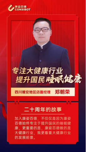 2017年,鄭朝榮在對康姿百德有了一定了解后,義無反顧的加入了康姿百德。這不僅僅是因為康姿百德始終專注于提升國民的睡眠健康,更重要的是,康姿百德做的是大健康行業,他更看重大健康行業的發展前景。每當他看到顧客因為選擇了康姿百德的產品和服務,臉上綻放出燦爛的笑容時,他更是由衷地感到高興。