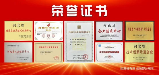 康姿百德的科研能力獲得了社會各界的認可,被授予“高新技術企業”“磁科技應用研發機構(A級)”“河北省企業技術中心”“河北省技術創新示范企業”“河北省工業設計中心”等多項榮譽和資質。