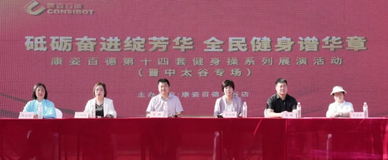康姿百德集團銷售公司副總監 惠鵬,太原區域經理 肖峰,晉中地區、太原地區總經理 趙淑敏,晉中太谷地區總經理 王海麗,晉中太谷地區健身操愛好者代表 楊惠榮,太谷地區消費者代表 王富平共同出席了本次活動。